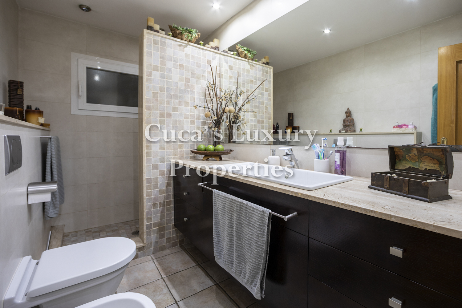 Un baño completo reformado de mucha calidad con plato de ducha.