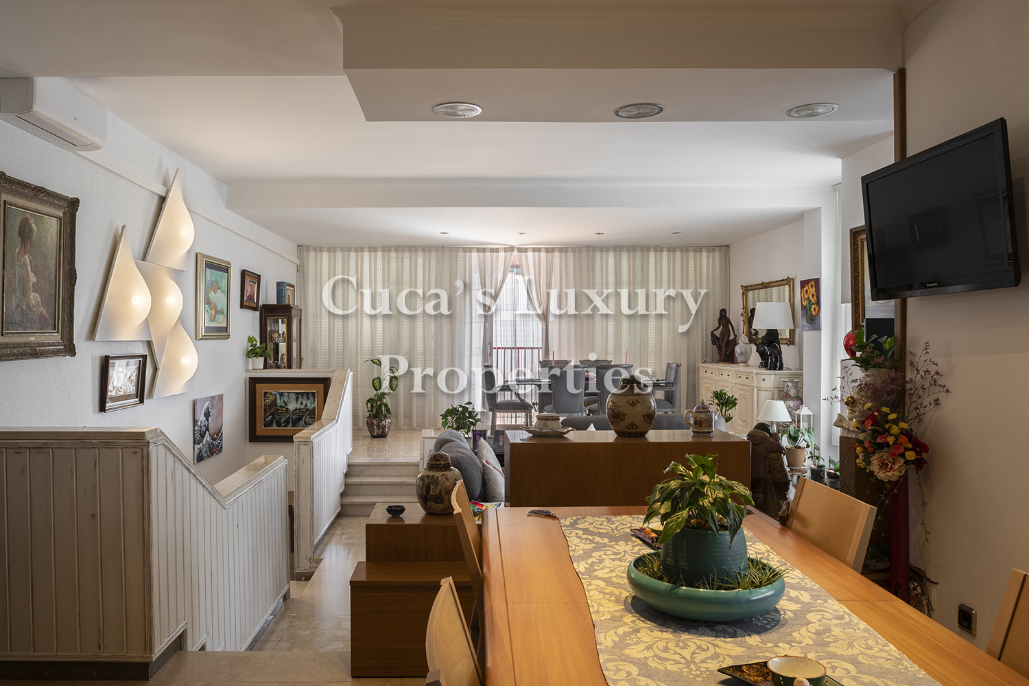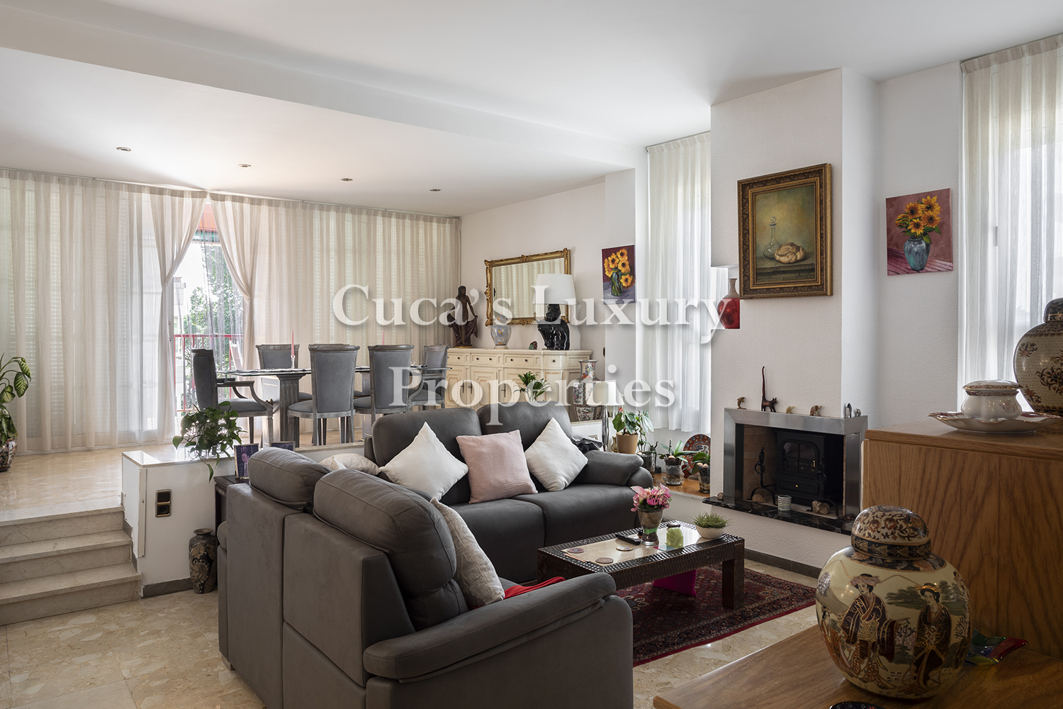 Se compone de; Recibidor, gran salón comedor en dos niveles y diáfano con chimenea y salida a gran terraza, con un salón y un comedor, cocina office toda exterior y muy soleada, con lavadero independiente, un comedor de diario junto a la cocina muy espacioso y un aseo de cortesía.