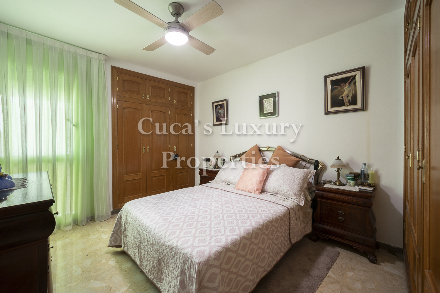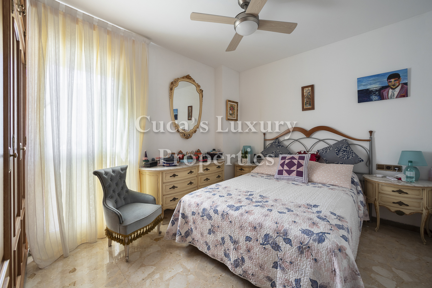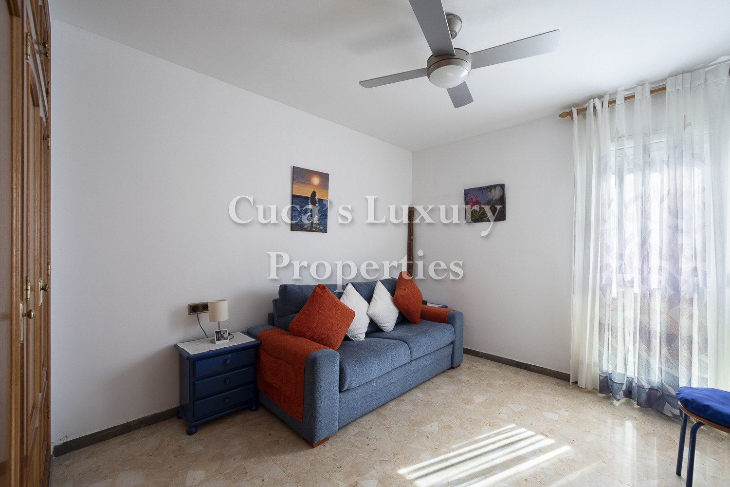 De estancias muy amplias, toda exterior y muy soleada por ser orientación suroeste, con muchos armarios y con gran capacidad de almacenamiento y muy independiente.